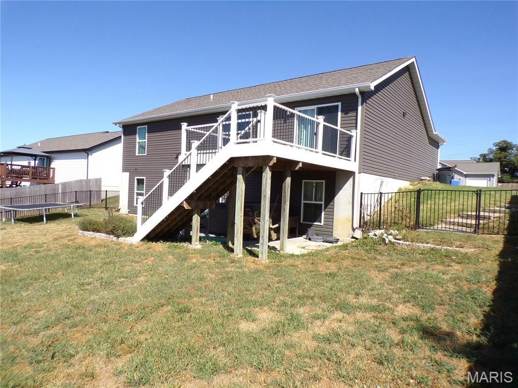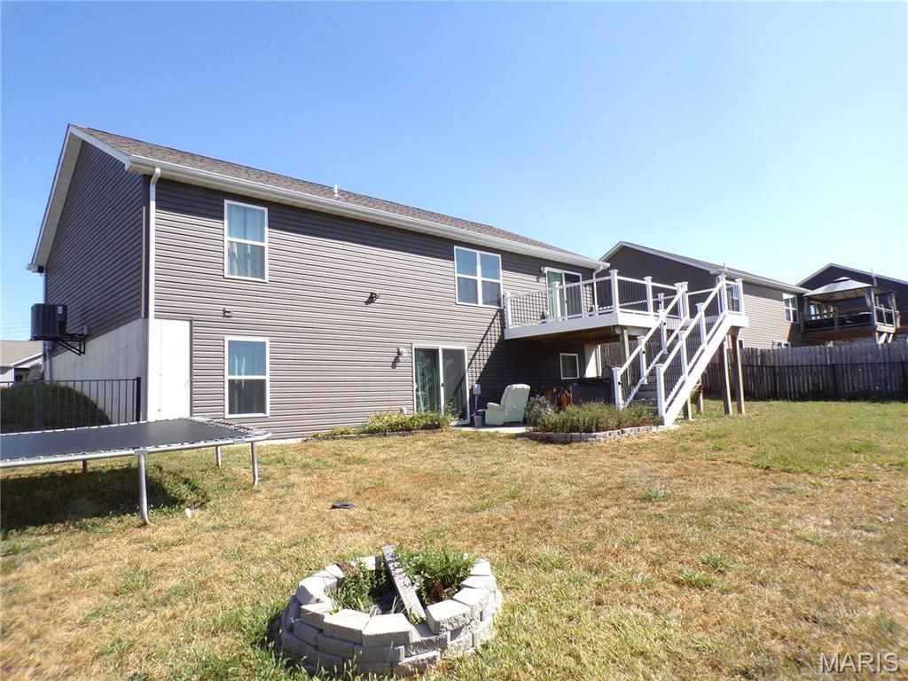 THIS HOME OFFERS NOT 3 BUT 4 BEDROOMS THAT ALLOWS FOR EVERYONE TO HAVE THEIR OWN PRIVATE SPACE. This home has been well maintained and updated. Walking into the home you will notice the beautiful wood flooring throughout the great room. The large great room offers plenty of living space for entertaining or a place where all of the kids can gather for movie night. The kitchen has plenty of county space for the cook in the family with many custom cabinets and a pantry. Off the breakfast area the sliding glass door takes you out to a huge composite deck for your evening of relaxing or those weekend BBQ's. Under the deck you will find a nice size covered patio. The home has 3 nice size bedrooms on the main level and a 4th bedroom in the lower level that could be used as a great home office. The lower level is a walk out that leads you to the fully fenced in back yard. The oversize garage offers plenty of space for both cars, lawn mower, bikes and any other item you need to store. This home also has added parking spaces as the driveway has been added onto to accommodate more cars to park on the side and not directly behind the garage doors. So if you have an expanded family needing more living space, maybe a home office, a fully fenced in back yard, a large deck just off the breakfast area, a primary bedroom suite with a full bath and walk in closet, a full walkout basement with a roughed in bath and plenty of space to add more living space, then this home IS FOR YOU. DON'T WAIT