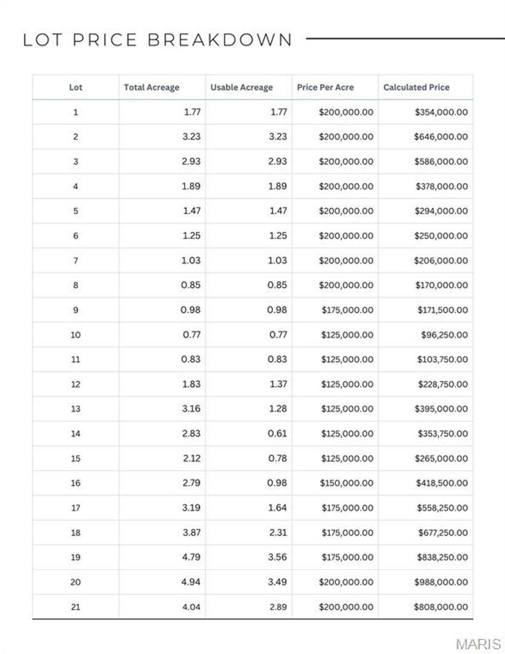 COMMERCIAL/INDUSTRIAL BUILDING SITES!! Choose your site from 36+/- ACRES OF LAND that is ready-to-build with exceptional road frontage! Price per acre varies depending on size and location. Lot lines and sizes can be adjusted to fit your needs. Located just off Highway 61, this property provides outstanding visibility, easy access to major highways, only 15 minutes from Wentzville, and 45 minutes from St. Louis International Airport. Zoned for commercial and industrial use, it's ideally positioned near retail, restaurants, schools, and growing residential communities"”making it the perfect environment to launch or expand your business in one of Missouri's fastest-growing counties. See attachments and photos for site plan with prices. Seller will consider build-to-suit options.