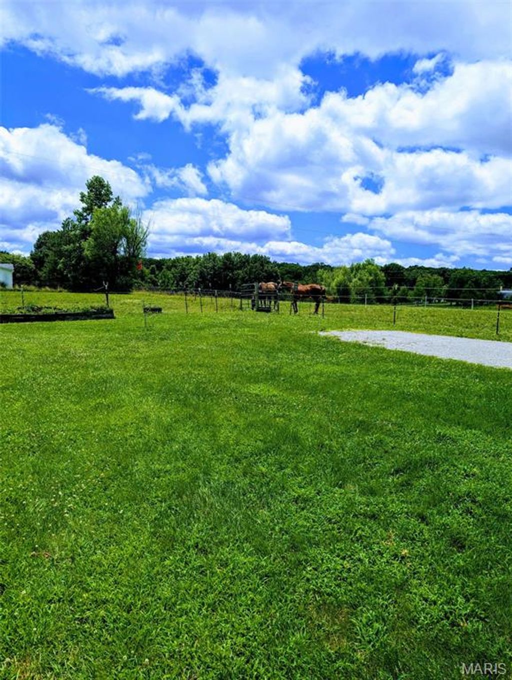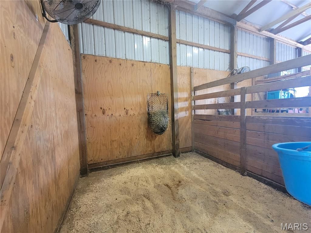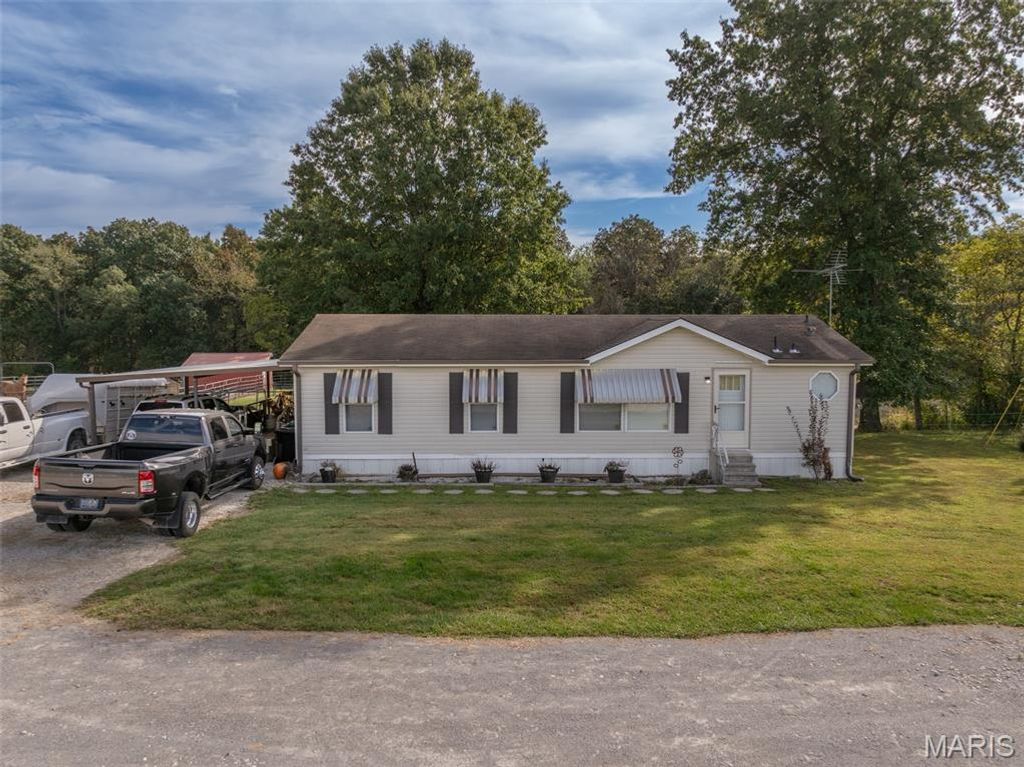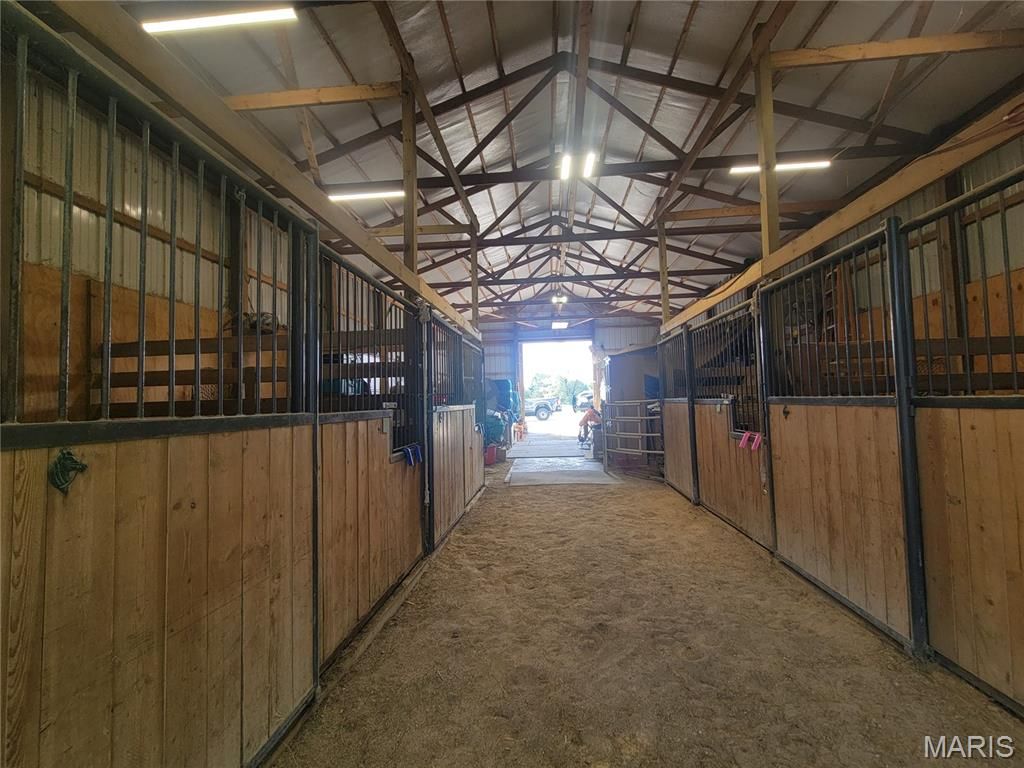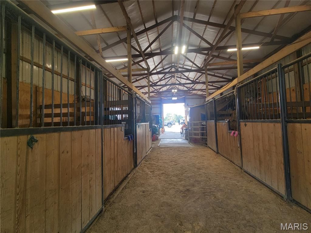 Attention horse lovers, this is the place for you! 5 Fully fenced and crossed fenced acres roughly a 1 mile ride down a seldom traveled gravel road from the entrance to Cuivre River State Park's riding trails! The home on the property is a tastefully renovated, all-electric Fuqua manufactured home with custom hickory cabinets, hard wood flooring and open floorplan. Sizeable master bedroom easily fits a California King bed and the en-suite master bathroom follows suit. The living room is big enough to fit any sectional couch you could think of and all bedrooms have closets large enough for any wardrobe. Home overlooks a pristine half acre pond and has a poured back patio to enjoy the view. 56x36 pole barn contains 4 large stalls to keep your horses at the end of the day with runs out to the 4 lots of pasture and still has enough room to park a pickup truck in or keep a camper. In addition to the pole barn there is a 22x30 3 sided metal building that is perfect to store all the hay you'll need for the winter. Lots of large deer travel this area coming in and out of Cuivre River State Park and the well maintained wooded section on the back of the property is the perfect place to bow hunt! All of this centrally located between US-61 and Highway 79 making for a quick commute and a shortcut through the park to Troy. Sellers will be taking the coral panels that are on the property and replacing them with fencing that is the same as the established fencing on the property. Sellers will also be taking stall doors and replacing them with swinging gates as well as the small red portable building north of the pond.Being sold as-is.