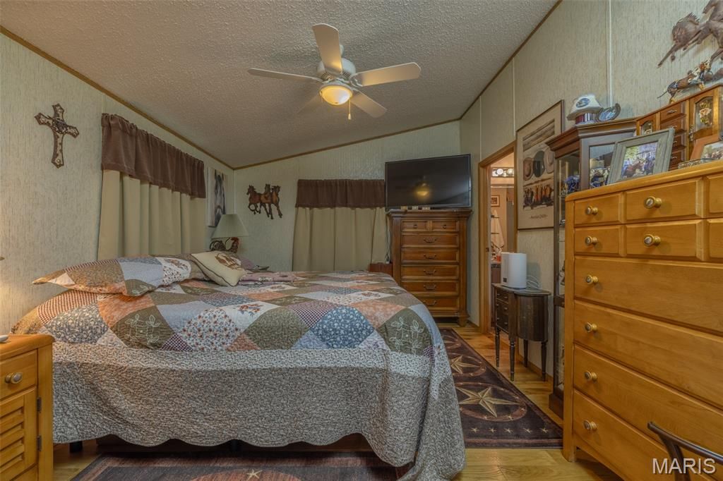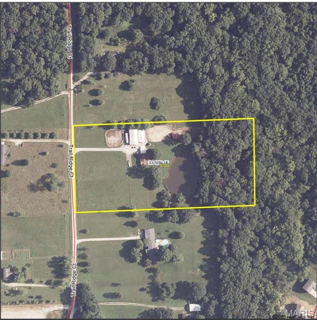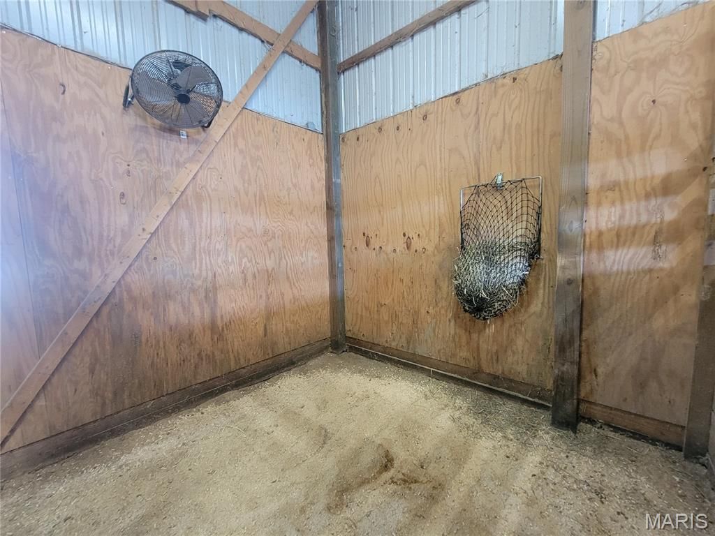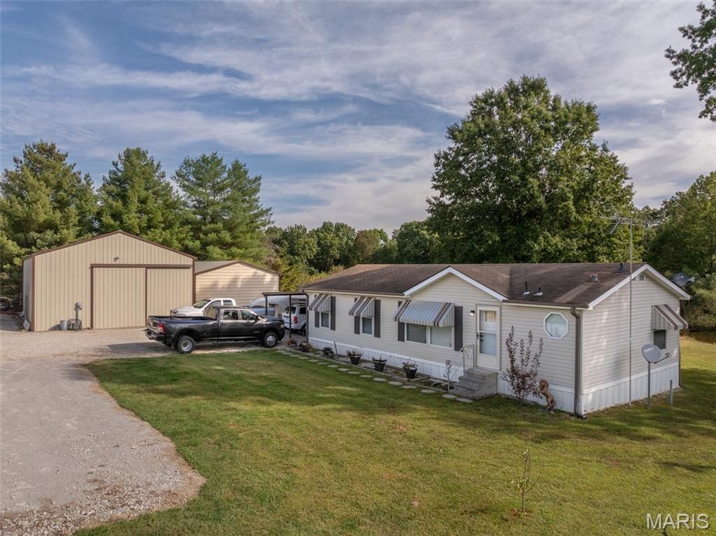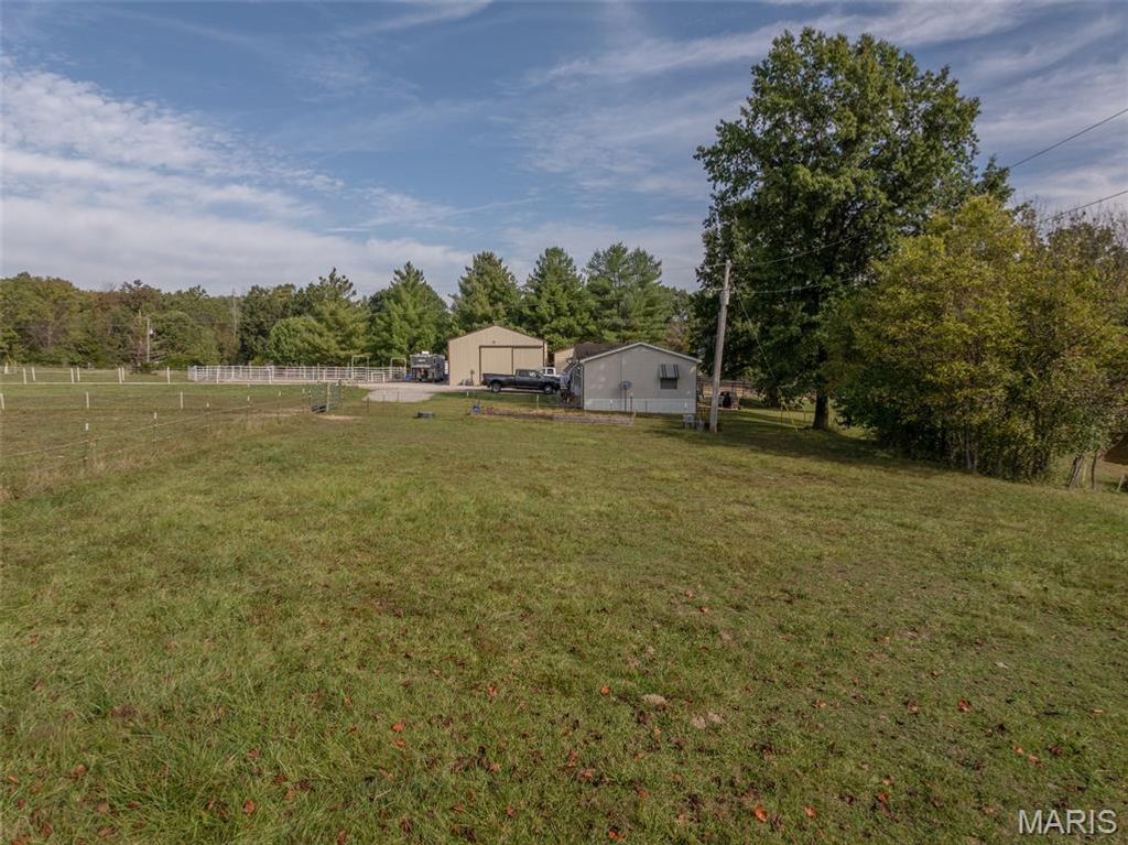 Attention horse lovers, this is the place for you! 5 Fully fenced and crossed fenced acres roughly a 1 mile ride down a seldom traveled gravel road from the entrance to Cuivre River State Park's riding trails! The home on the property is a tastefully renovated, all-electric Fuqua manufactured home with custom hickory cabinets, hard wood flooring and open floorplan. Sizeable master bedroom easily fits a California King bed and the en-suite master bathroom follows suit. The living room is big enough to fit any sectional couch you could think of and all bedrooms have closets large enough for any wardrobe. Home overlooks a pristine half acre pond and has a poured back patio to enjoy the view. 56x36 pole barn contains 4 large stalls to keep your horses at the end of the day with runs out to the 4 lots of pasture and still has enough room to park a pickup truck in or keep a camper. In addition to the pole barn there is a 22x30 3 sided metal building that is perfect to store all the hay you'll need for the winter. Lots of large deer travel this area coming in and out of Cuivre River State Park and the well maintained wooded section on the back of the property is the perfect place to bow hunt! All of this centrally located between US-61 and Highway 79 making for a quick commute and a shortcut through the park to Troy. Sellers will be taking the coral panels that are on the property and replacing them with fencing that is the same as the established fencing on the property. Sellers will also be taking stall doors and replacing them with swinging gates as well as the small red portable building north of the pond.Being sold as-is.