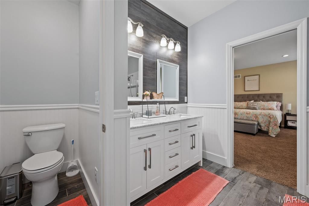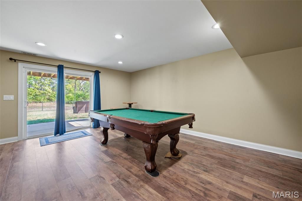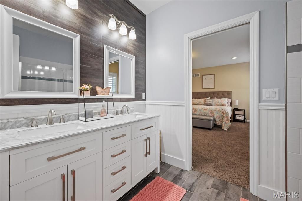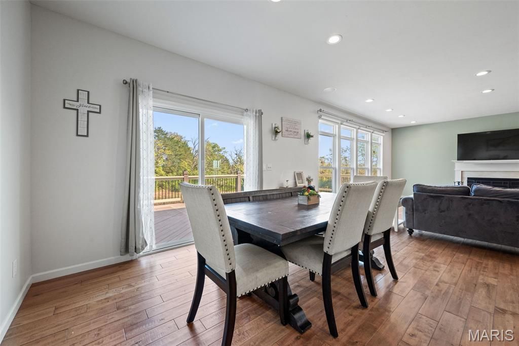Welcome home to this stunning 1.5-story offering 5 bedrooms, 3.5 bathrooms, and exceptional living spaces throughout. Perfectly situated on a beautiful flat lot that backs to mature trees, this home features a fully fenced backyard"”ideal for outdoor entertaining, play, and relaxation. The inviting curb appeal is complemented by a spacious 3-car garage. Inside, the main level boasts a luxurious primary suite complete with custom built-in shelving, elegant plantation shutters, a spa-like en suite bath, and an expansive walk-in closet. The heart of the home features a large living room with a cozy wood-burning fireplace and abundant natural light. The kitchen provides plenty of cabinet and counter space, a pantry, and a comfortable flow for both everyday living and hosting guests. Upstairs, you'll find a generous loft area"”perfect for a reading nook or playroom"”along with three spacious bedrooms, each offering its own walk-in closet and sharing a full bath. The finished walk-out basement expands your living space with a huge recreation room, ideal for movie nights or game days, plus a flexible area for an office, gym, or homeschool setup. A fifth bedroom and full bath make this lower level perfect for guests or extended family. Step outside to enjoy the private patio and tree-lined backdrop that provides peace and privacy. This meticulously maintained home truly combines comfort, function, and style in every detail.