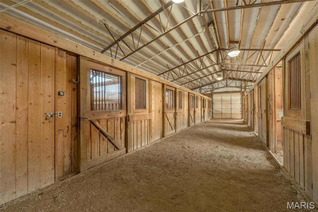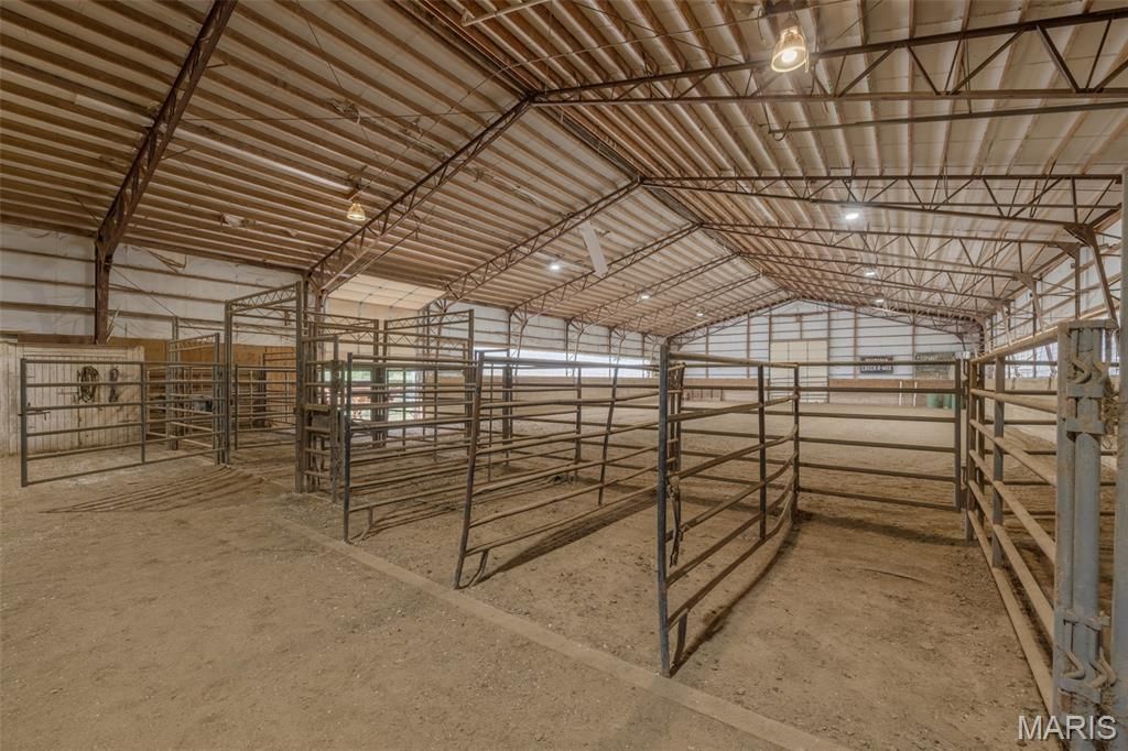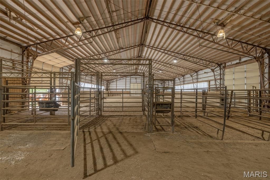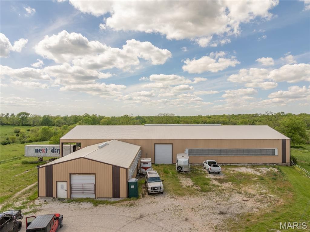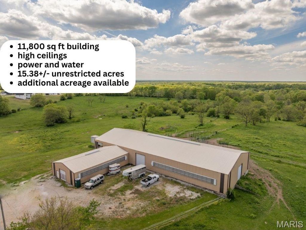 Endless Possibilities! Massive 11,800 sq ft free-span metal building with lean to and loading dock on 20.99 surveyed acres with no restrictions and electric and well in place! Perfect for machine shop, indoor storage or light manufacturing. Building is currently set up as a horse facility and has a 100x60 indoor riding arena, tackroom, feed room and 10 horse stalls each with their own closet and heated waterer. In addition to those 10 stalls there is a foaling stall, 4 feed stalls and 4 tie-out stalls. Property features an outdoor arena along with 13+/-acres of fenced pasture and a great laying spot already rough graded ready to build on. There is a spring on the property giving consistent water to any horses out in the pasture. Both indoor arena and stall barn have pneumatic curtains and there are 6 additional closets inside next to the arena. There is an older barn on the property with primitive living quarters that could be used while you build your dream home or renovated and used as a permanent residence. All of this is only 2miles from US-61 under 15 minutes to Troy, only an hour to DownTown St Louis and would make the perfect place for a commercial boarding and training barn. Land is unrestricted so there is plenty of opportunity to expand the current operation or use the building for something else entirely. Additional 17.24 acre parcel available