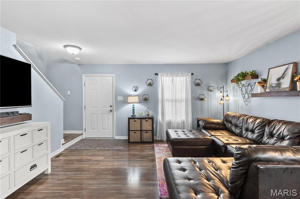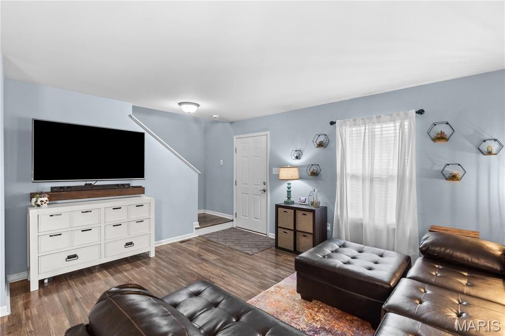 The main level features an open-concept floor plan with a spacious living room, dining area, and kitchen. The kitchen offers ample cabinet space and easy flow to the dining and living areas, making everyday living and entertaining a breeze.