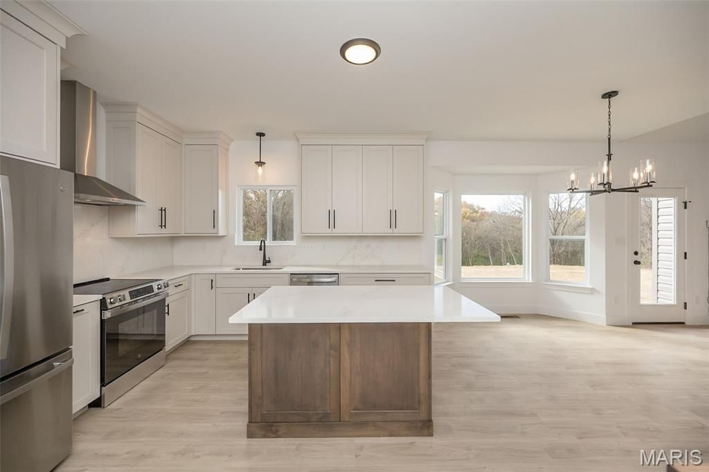 Brand new ranch home on nearly 3 acres of level, private ground"”ideal for a future pool, detached garage, or simply enjoying wide open space. Located in a low-restriction, 21-lot development with homesites ranging from 3 to 6 acres, this is the closest new home subdivision off blacktop near town with public water and easy access to amenities. Thoughtfully designed and packed with upgrades, this home features nine-foot ceilings on the main level and a full nine-foot pour in the lower level, an oversized three-car garage, bay window, walk-out patio, and a beautiful brick and board-and-batten exterior with architectural shingles. Inside, you'll find high-grade luxury vinyl plank flooring, a full stone wood burning fireplace, and real custom cabinetry with crown molding. The kitchen offers quartz countertops, upgraded appliances, and plenty of workspace and storage. Main floor laundry adds everyday convenience. The primary suite includes his and hers closets, a double adult-height vanity, and an oversized walk-in tile shower. The lower level is ready to grow, with an egress window and full bathroom rough-in already in place. Offered at a builder spec discount, this home delivers exceptional value in a premium setting.