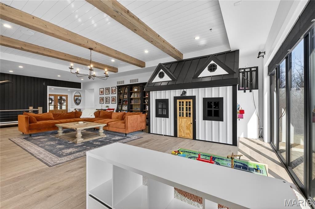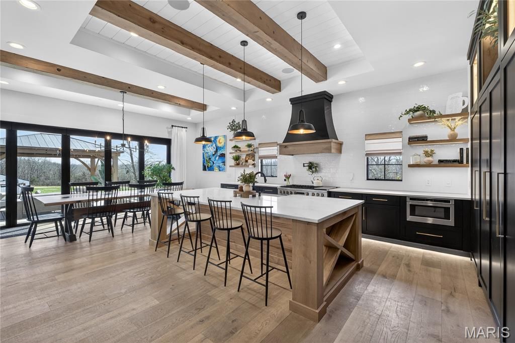 Welcome to your private luxury ranch retreat "” a fully custom estate set on 20 unrestricted acres of pristine, huntable land offering total freedom, privacy, and endless possibilities. Spanning approximately 3,000 square feet on the main level, this fully custom ranch masterpiece was designed with bold architectural presence and sophisticated, modern-chic finishes throughout. Clean lines, soaring ceilings, and expansive walls of glass create a striking first impression while flooding the interior with natural light and panoramic views of your private acreage. The open-concept living space is both dramatic and inviting "” anchored by a grand living room with statement lighting, designer textures, and seamless indoor-outdoor flow. The gourmet chef's kitchen is a showpiece, featuring custom cabinetry, premium appliances, oversized island, and refined finishes that blend warmth with contemporary elegance. Every detail has been curated for a luxury lifestyle and effortless entertaining. The main level offers a luxurious primary suite with spa-inspired bath and oversized walk-in closet along with 2 other bedrooms and 2.5 designer bathrooms. Downstairs, the fully finished custom basement expands your living space with incredible versatility. It includes: An additional bedroom and full bath, large secondary living room & recreation space with two storage rooms, a bonus room, an office, a vault room and a security bunker. Whether for preparedness, privacy, or protection, this lower level was designed with intention and functionality in mind. Outside, the property truly shines. The 20 acres are fully usable and unrestricted "” ideal for hunting, recreation, livestock, trails, or simply enjoying wide-open space without HOA limitations. Beyond the home, the estate continues to impress. The 20 unrestricted acres provide complete autonomy "” hunt, ride, build, expand, or simply enjoy unmatched privacy without HOA limitations or land-use restrictions. Complementing the residence is an impressive 3,000 square foot climate-controlled barn, masterfully converted into a modern barndominium. With heat and air throughout, this structure offers exceptional versatility "” from luxury workshop to event space to income-producing opportunity. Attached is a beautifully finished 1-bedroom, 1-bath private apartment, ideal for guests, extended family, ranch staff, or rental income. Bold. Refined. Unrestricted. A rare combination of upscale craftsmanship and unrestricted country living "” this is more than a home, it's a legacy property.