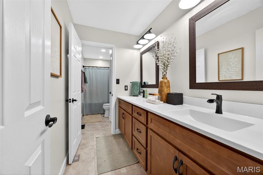 Spacious 5 Bedroom 4 bath 2 Story located on a quiet cul-de-sac in the boundaries of coveted Francis Howell school district. Great curb appeal meets timeless architecture in this home offering over 5,000 sq ft of finished living space, a 3 car garage, walk out finished basement, fenced yard, new composite deck and much much more! As you enter the home you will immediately notice the den/office to your left. The large family features a wood burning fireplace and opens to the large kitchen with granite counter tops, center island with electric cook top, stainless steel appliances, lots of cabinet space, walk in pantry, breakfast bar and breakfast room with bay patio and new french door leading to the new large deck with access to the yard complete with updated landscaping. The large hearth room is the perfect spot for morning coffee, a space to let the kids play or extra seating for entertaining! Updated- wood laminate floor carries through the entire main level! Round out the main level with a guest/powder room and main floor laundry. Upstairs you will find the huge 22 X 19 master bedroom suite that features french door entry, a walk in closet and a master bath with soaking tub/separate shower and a huge wraparound vanity with dual sinks, a makeup stations and plenty of storage. Three additional large bedrooms and a huge loft area that is great for studying or a play area. You'll also find a second, completely renovated full bath on the upper level The lower level has a walk out and offers an additional full bath, 5th bedroom, rec rm area, lounging/TV area with plenty of room for storage. Zoned/Dual HVAC, neutral paint- this home has room for a large or growing family or room to just spread out! Located in the heart of St Charles with easy access to highways, restaurants and shopping- an easy drive to the airport or a commute to St Louis.. and walking distance to Veterans Tribute Park that offers a splash pad, great playground, dog park and lake. This one really does have it all packaged up and ready to go! Unpack your boxes, you are HOME.