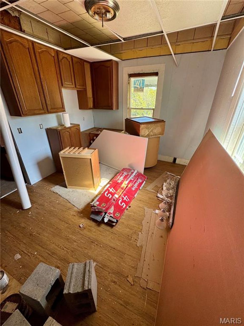 Great flip opportunity! This is the one you have been waiting for. Enter through the covered porch and step inside this massive home with a vision for reviving it's interior. This spacious 3 bed 1 bath (potential second, has room to convert into a second bath in the primary bedroom) sits on a double lot waiting for it's time to shine bright. With it's versatile floor plan you can create your space as you see fit. Did I mention it has main floor laundry. Need parking space? This has a gravel drive that fits 6 cars easily. It boosts a newer 200- amp electric panel, some new windows, newer siding, and kitchen cabinets ready to be installed. Partial walk-up basement has sump pump and great for extra storage space. This home features 9 ft tall ceilings. HVAC and AC unit that sit inside the home work and need to be installed per the owner. All building materials in the home stay.