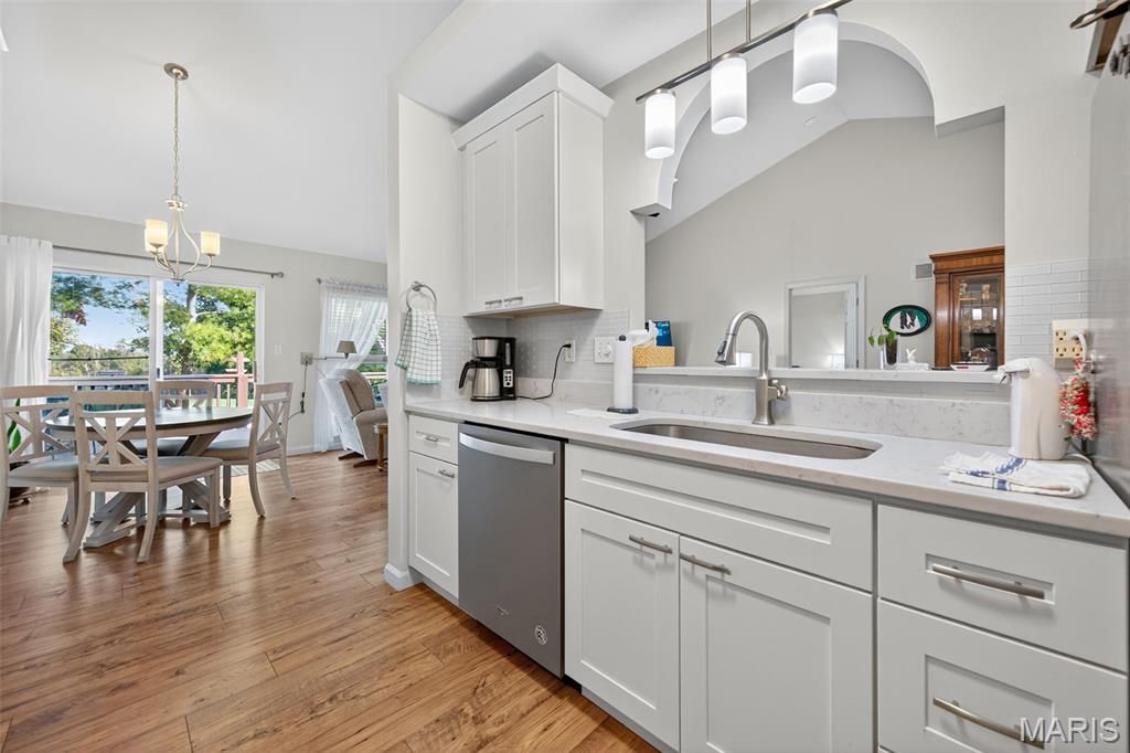 WELCOME HOME TO QUIET, PEACEFUL CARE FREE LIVING!!! Attractive & Inviting Curb Appeal. The first step into your New Villa Home is Quite Impressive. Immediately you will appreciate the Openness of your floor plan Boasting Soaring Vaulted Ceilings, Newer Luxury Vinyl Flooring, Tons of Natural Light beaming from your Skylights plus all the Great Room Windows. The Kitchen features Newer Cabinet's, Countertop, Backsplash, Kitchen Sink, Samsung Microwave, Newer Disposal, Refrigerator & Stove. WE ARE NOT STOPPING THERE!! How about a Newer Whirlpool Dishwasher, ALL Newer Faucets on Main Floor Replaced, Newer Lighting & Ceiling Fans, Newer Washer & Dryer.. Finished Lower Level features 3rd Full Bath, 3rd Bedroom & Family Room w/ Large Windows & Walk Out Slider. Everything is clean & shows respect & extra care. If that does not make you SMILE, how about a Simply Safe Security System on the first floor and in the lower level. In fact it was just Pre Listing Inspected Head to Toe by Home Team Inspection which turned out very clean, the minor defects are being corrected by Seller, copy on MLS for your review.