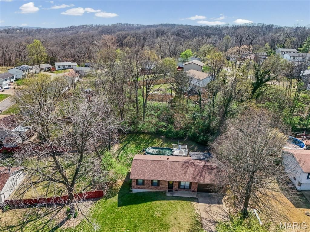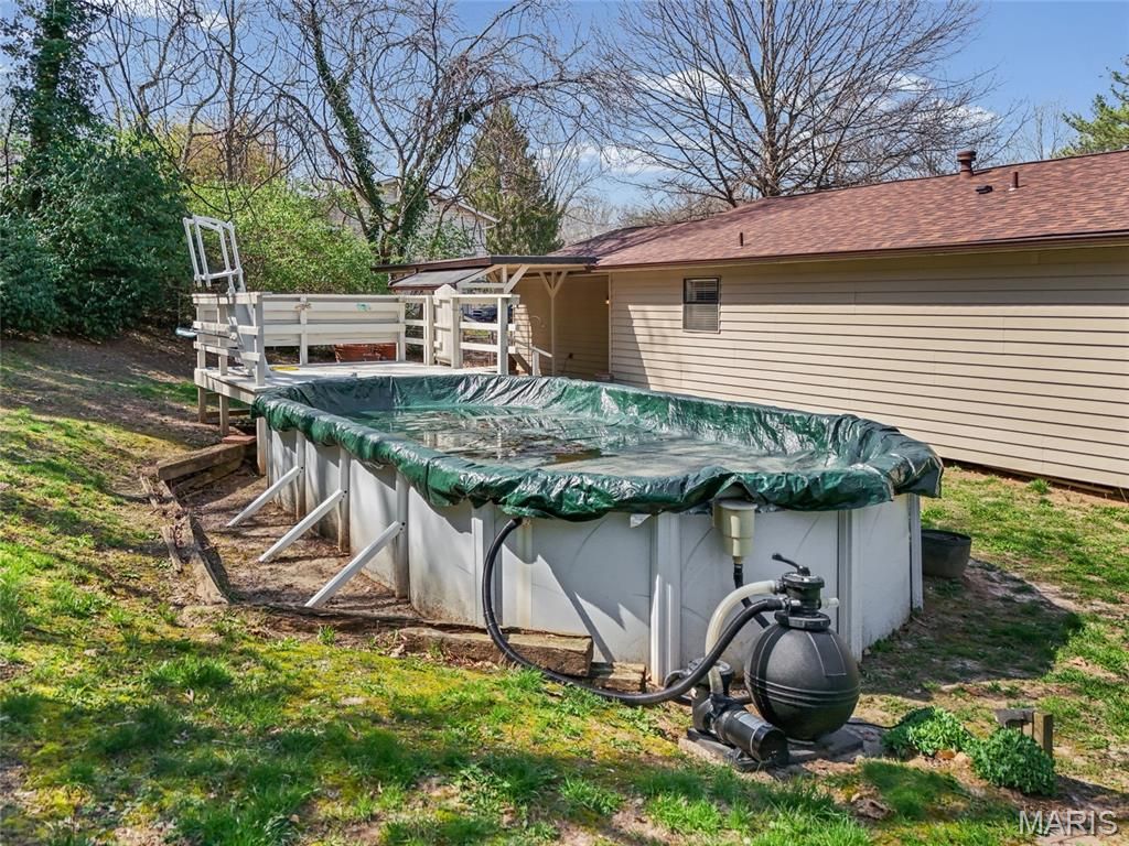 Outstanding opportunity - exceptional ranch home with 4 bedrooms, 2 full baths, attached two car garage AND a pool! Inviting front patio welcomes you to the inside. As you enter the large living room you'll be greeted by warm flooring and natural sunlight from the large front windows. The spacious kitchen features everything you need - lots of cabinetry, dishwasher, gas stove and plenty of counter space. This eat-in kitchen also opens up to the attached garage and the big, fully fenced-in backyard. Covered, big patio for BBQ hangouts and an extended deck to the pool! Plenty of areas in the backyard for gardening or playgrounds! Roof has been replaced in 2024. Great, convenient layout! Three main floor bedrooms featuring a primary bedroom with a full bath and second separate full bathroom to round up the main level. Lower level has a large family room that could be used as an office, in-home gym, movie theater+++ Downstairs also has a bedroom AND another sleeping room! Unfinished area in the basement has shelving for storage and a laundry area. Move-in ready for you - this home comes with passed occupancy AND a home warranty! Location, location - close to restaurants, shopping, parks, schools & STL. You'll fall in love this home - CALL NOW