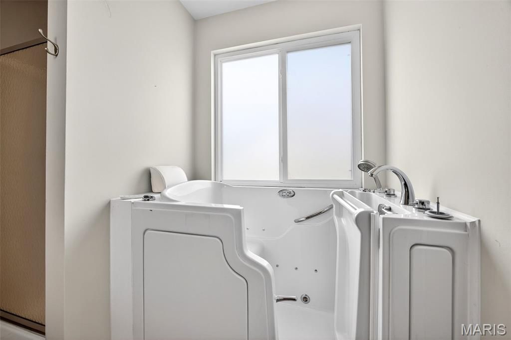 The spacious primary suite offers a large walk-in closet and a private bath complete with a separate tub and shower. The current owner has upgraded to a luxurious walk-in tub with thermo-hydro jets, perfect for relaxing after a long day. Prefer a traditional tub? The space can easily be converted back to suit your needs.