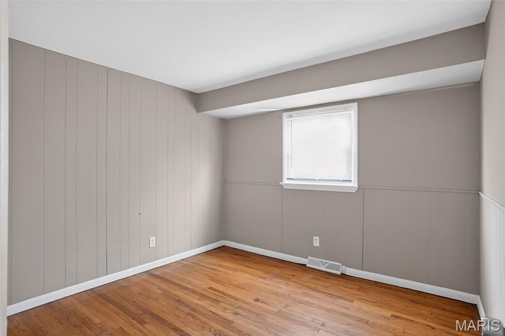 This charming North County ranch-style home in Riverview Gardens offers 1,134 sq ft of clean, move-in-ready living space. The classic brick-and-siding exterior is complemented by a convenient carport and a large, fenced backyard, perfect for outdoor activities. Inside, the home features a neutral color palette and beautiful hardwood floors throughout the main living areas and three bedrooms. The updated kitchen is both bright and functional, boasting crisp white cabinetry and ample counter space.