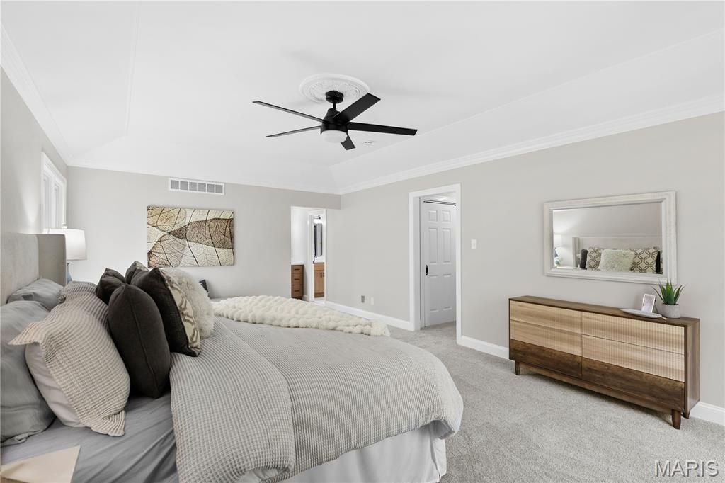 Absolutely stunning renovation on this massive home in the heart of Creve Coeur! So many updates and features throughout! Amazing curb appeal with fresh landscaping and recently resurfaced driveway on a 1 acre lot! Spacious foyer will greet you as you enter with all brand new hardwood floors flowing throughout most of the main level! Spacious formal living room with all new lighting and crown molding. Adjacent massive great room with gas fireplace, new canned lighting, and wet bar with new quartz countertops! Updated kitchen boasts all new 42" cabinets with stainless appliances, new quartz countertops, new tile backsplash, new lighting, island with bar stool seating, and lots of custom pantry space! Adjacent 4 seasons room with its own separate HVAC system and new flooring with an outstanding view overlooking the massive back yard! Main floor laundry with new tile flooring! Large formal dining room with crown molding and new fixture! All 5 main level bathrooms boast new ceramic tile, new vanities and quartz tops, new toilets, flooring, and fixtures! Upper level features a massive primary bedroom suite with coffered ceilings, full bath with all new luxurious 5x5 shower with 2 showerheads and new tiled surround, new double bowl vanity and all new flooring! Huge walk in closet! Three additional large upstairs bedrooms all with lots of closet space! TWO upstairs hall baths with new flooring, tile, vanities, and fixtures! All carpeting throughout the home is brand new! Lower level is massive and offers a large rec room with canned lighting, decorative fireplace, all new wet bar with cabinet storage, full bath with new flooring, vanity, and toilet, and additional office area. Nearly 5500 square feet of finished living space in this beautiful home! Additional features include brand new roof, all new baseboards throughout, tons of crown molding, three hvac systems, oversized three car garage, fresh landscaping, all new light and plumbing fixtures throughout, new door hinges and handles throughout, new light fixtures throughout, Anderson windows, amazing location on a culdesac street within close proximity to highway 270 and 141, schools, shopping, and so much more! Homes like this are hard to find, this one is a must see!