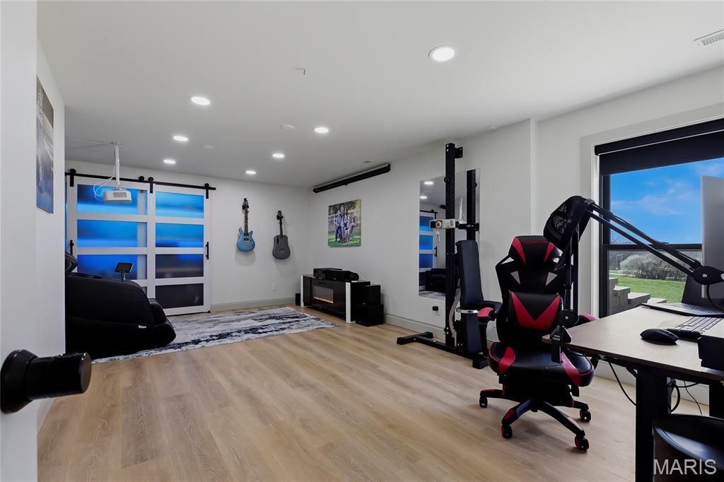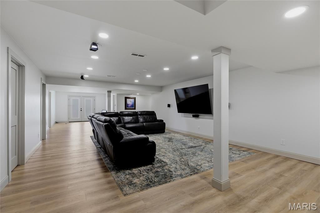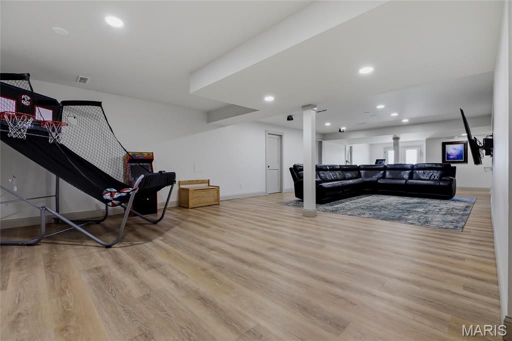 The walkout lower level was finished in 2023 and boasts a huge recreation room which is wired for surround sound and has a plumbing rough in to add a wet bar, a game/entertainment area, an office, spa/storage room, 2 additional bedrooms, new full bathroom (2026), and ample storage space. The lower level offers a bright, airy feel with abundant natural light.