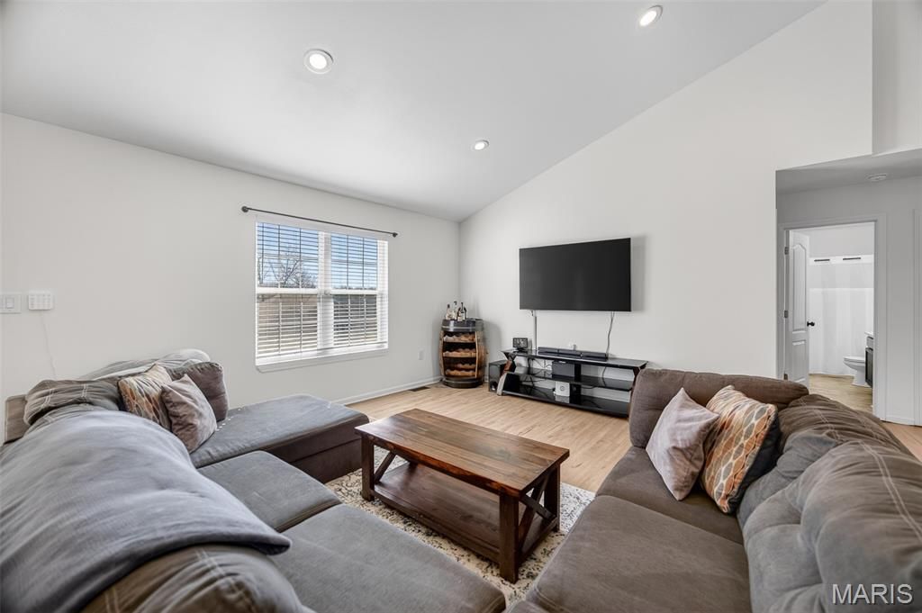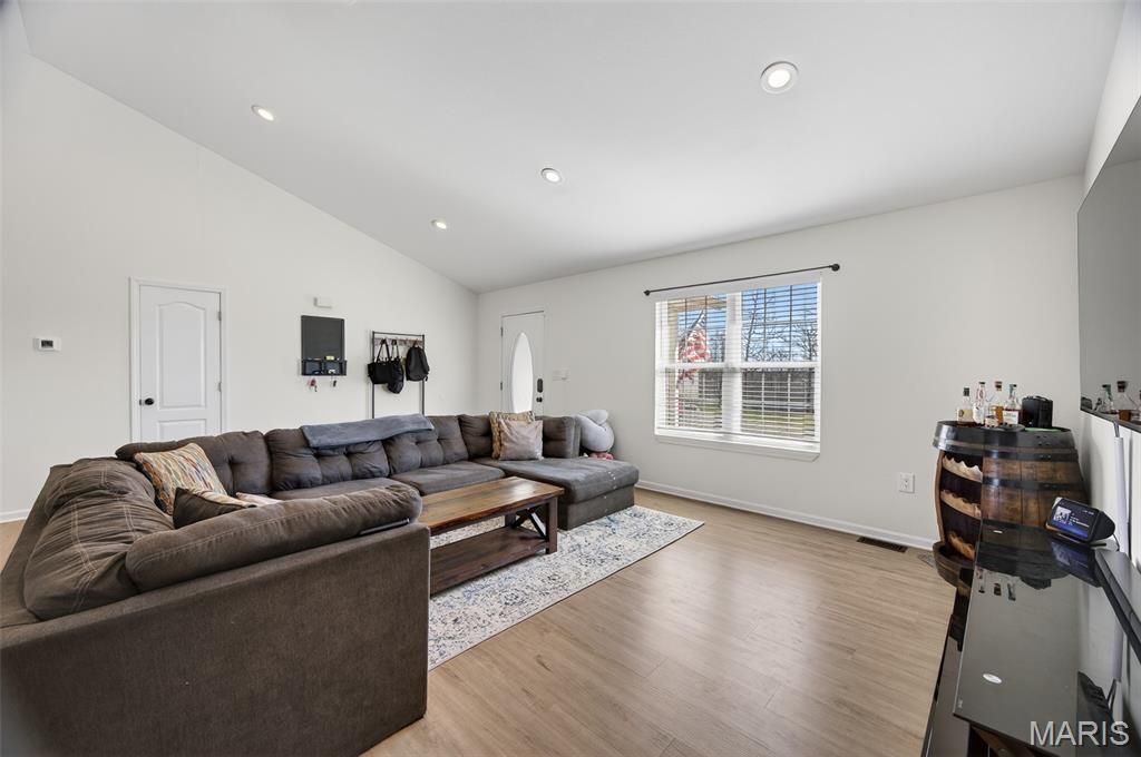 Step inside to discover a fresh, modern interior featuring all new paint and flooring throughout, creating a bright and inviting atmosphere. The living room includes vaulted ceiling and flush LED lighting, making the space feel grand. The updated kitchen is perfect for everyday living and entertaining, offering a clean, contemporary feel with plenty of space to cook and gather. Real wood cabinetry adds to the durability of the home.