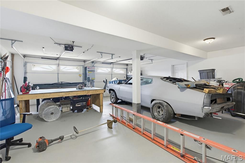 The spacious two-car garage goes above and beyond, offering ample room not only for vehicles but also for a workshop and generous storage. Organized, practical, and ready for hobbies or projects.