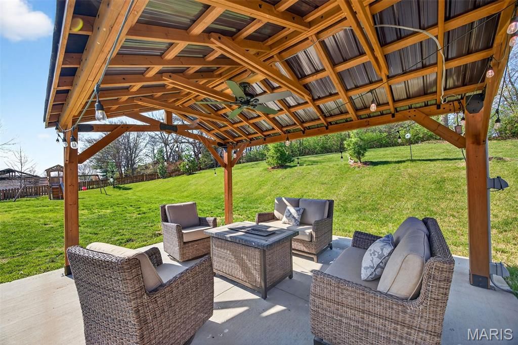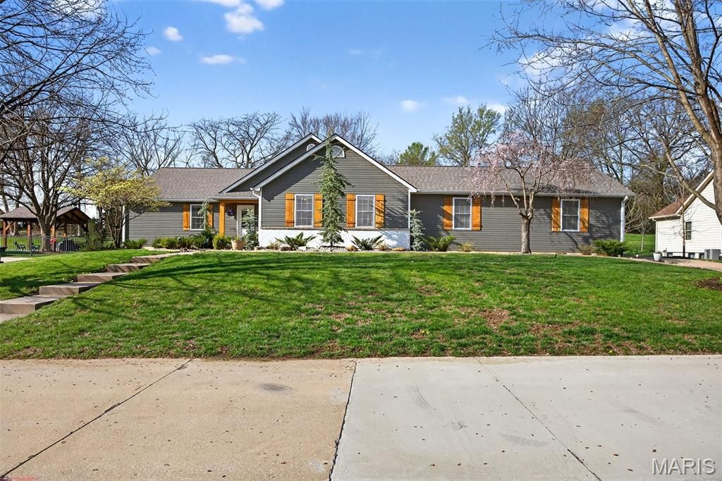Gorgeous home located in desirable Cottleville, in the community of Windsor Place. Spectacular ranch home featuring 4 bedrooms, 2-½ bath, oversized rear-entry 3-car garage. SPACIOUS open floor plan; great room with vaulted ceilings, gas fireplace and sophisticated hand scraped hardwood flooring, beautiful custom color paint. The chef in the home will enjoy every minute cooking and entertaining in the updated remodeled DREAM kitchen with quartz countertops, soft-close custom 39" shaker-style cabinets w/dish dividers & under cabinet lighting, herringbone subway backsplash, center island w/ breakfast bar, custom paneled Sub-Zero Refrigerator, WOLF Double Oven and gas cooktop, custom paneled Cove dishwasher, microwave drawer & lots of recessed lighting. The kitchen offers a pantry plus a party or craft storage closet. Desirable divided bedroom floor plan, primary suite with tub & separate shower, double-sink vanity plus and dual closets. The additional three bedrooms & full bath located on opposite side of the house. Updated main level laundry. Upscale farmhouse 1/2 bath just recently updated. Soaring ceilings, bay window, custom wood wall treatments. Iron railing leads you to the large open lower level featuring can lights, 2 large finished storage closets, dual electric boxes, bathroom rough in, sump pit and pump. Fantastic private yard, patio, pergola ~ large .63 acre fenced lot. Abundant new landscaping, beautiful feature trees and plants, upscale curb style landscape edging. 3 car oversized garage with work bench, built in storage and a clean up sink, plus - room to store your golf cart. Cottleville is an approved golf cart community - start enjoying everything Cottleville has to offer. Just a minute from down town Cottleville, dining, shopping and entertainment PLUS a wonderful park, swings & park equipment, amphitheater, volleyball courts, dog park and pavilions. Seller's list of the updates that they have done: new landscaping surrounding the entire house and backyard, 20+ new specialty trees, rock in all landscape areas plants, shrubbery, and grass improvements, cedar shutters, posts, and front porch ceiling at entryway. Freshly stained wood fence. New concrete driveway pad by garage (38' x 30') 2025, backyard pavilion with ~17x17 concrete pad 2023, Includes fan and in-ground electricity connected to the house. Roof replaced with 30-year warranty - March 2026. Updated kitchen - new gas burners on interior Wolf stovetop (2025). Most of the appliances have apx 1 year warranty remaining. New HVAC system 2024 (includes smart interior controls) Freshly painted interior walls and baseboards (2026), Freshly painted front door. Updated lighting fixtures and ceiling fans throughout the home. Custom wood board and batten wall accents 2024 in Primary entryways and Secondary full bathroom. Remodeled powder bath 2025 added shiplap, trim, cedar, and wallpaper. New shower heads in both bathrooms, Remodeled vanity in secondary full bathroom 2024. Remodeled fireplace with paint and brand-added custom solid cedar mantle 2025, New Fireplace Ignition system 2024. Laundry room mantle shelf added and painted cabinets (2025), New closet storage systems (2025) New live edge wood shelving in secondary bedrooms 2025. Added 8 new recessed (canned) lights in living room 2024, 2 new electrical switches with dimmable features 2024, 12 recessed lights and switches in basement 2025. New white concrete paint in basement 2025. New baseboards in basement 2025. Remodeled exterior brick on house, Remodeled exterior brick on mailbox. Added Smart locks and Ring cameras. This home offers so much plus a subdivision that offers a beautiful entry with 2 small lakes/ponds with quiet relaxing sitting area. Walk paths plus Cottleville offers golf cart paths. Fantastic HOME & LOCATION.