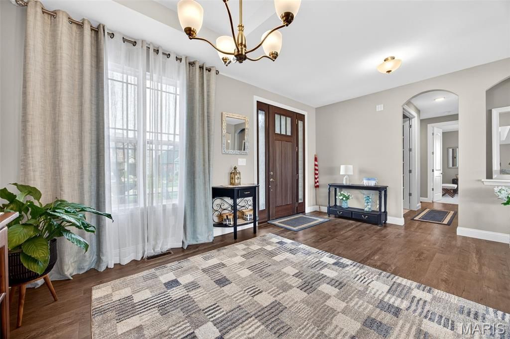 Two additional bedrooms, a full guest bath, and a dedicated office with French doors round out the main level, offering flexibility for work, guests, or hobbies. The walkout lower level with a 9 ft pour, is beautifully finished, creating the perfect space for multi-generational living, a private guest retreat, or an entertainment haven. A dedicated workshop area is ideal for hobbyists and weekend projects. This home is loaded with features which include a 19 ft butterfly island in the kitchen, a full sound room system throughout the home, whole house humidifier, an oversized 3-car garage with tall garage doors perfect for larger trucks, professional landscaping with sprinkler system, architectural roof. Easy access to premier shopping, dining, and community amenities, this home blends elegance with everyday ease in a neighborhood known for its warmth and friendliness.