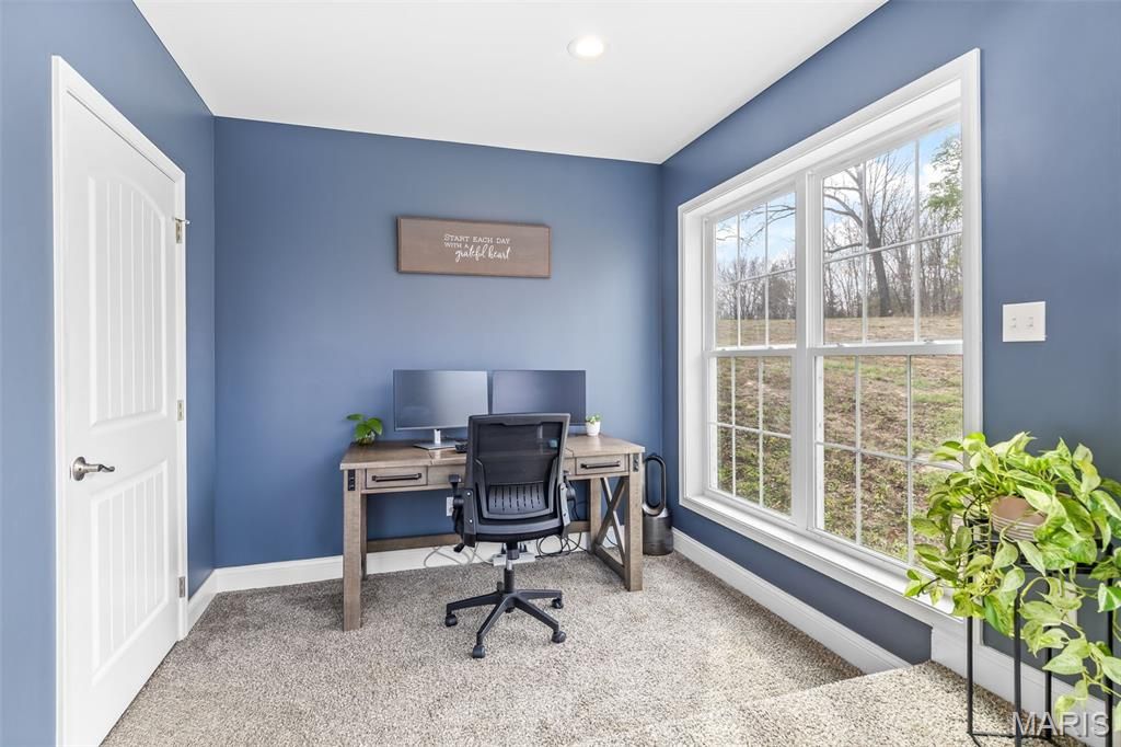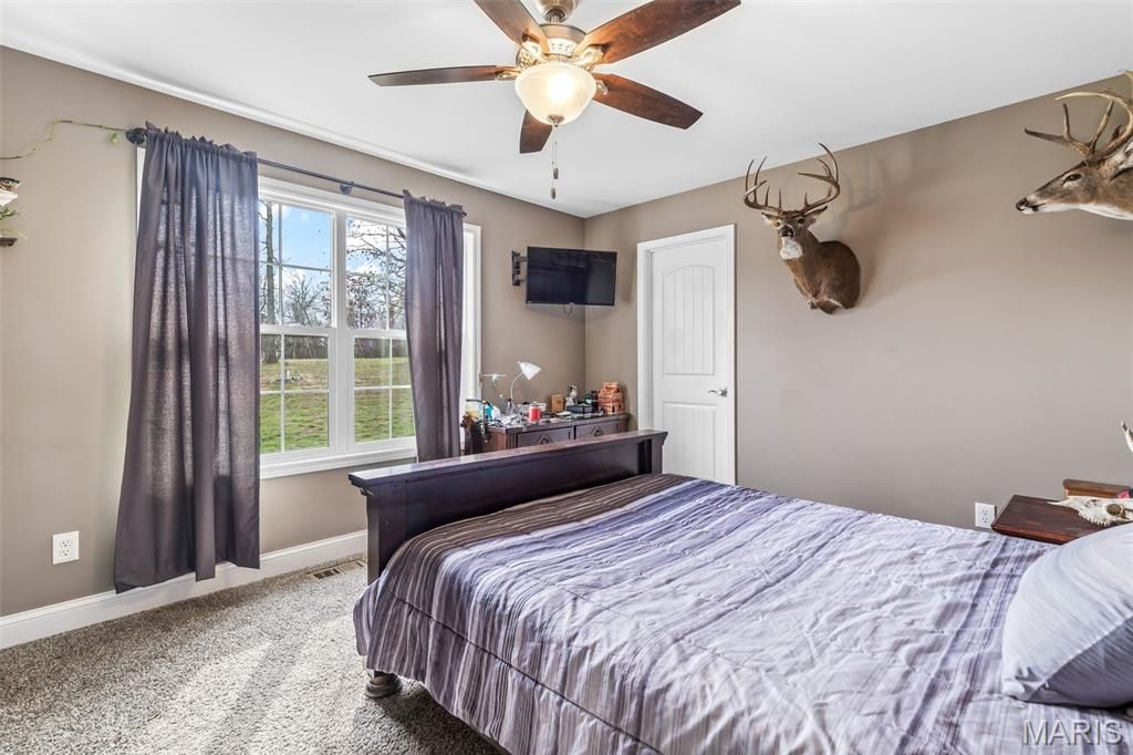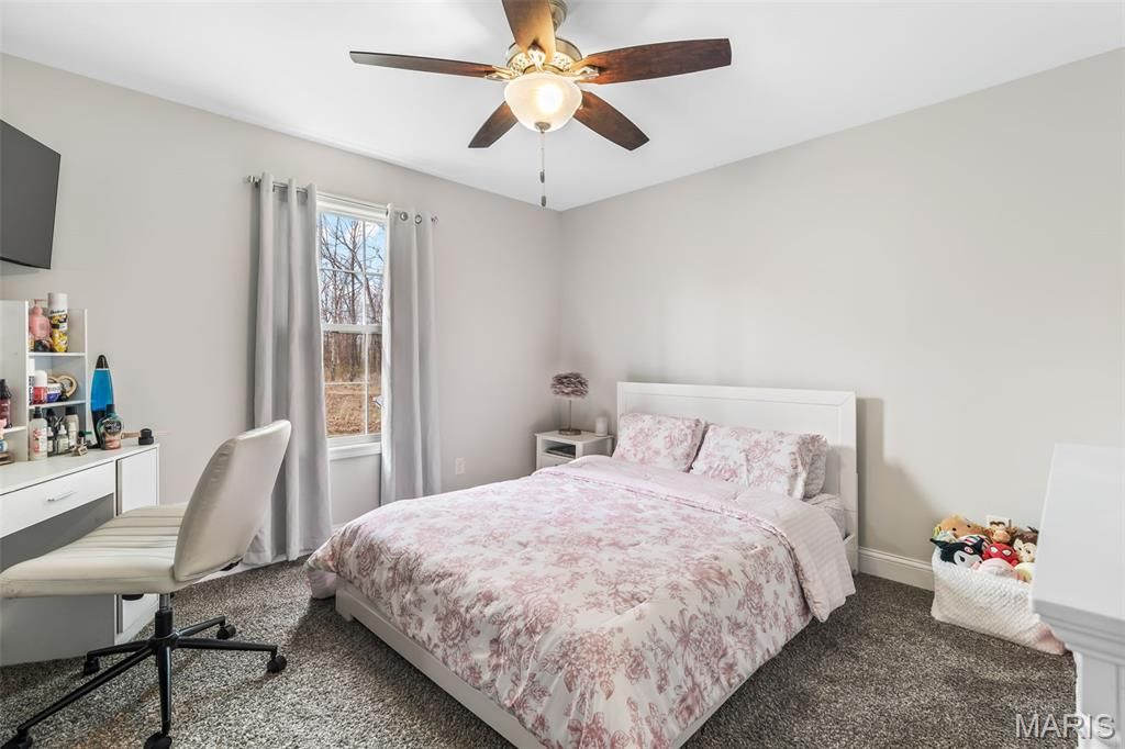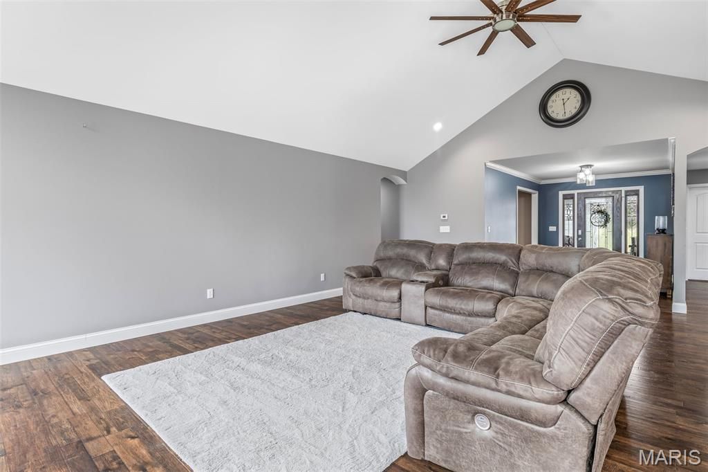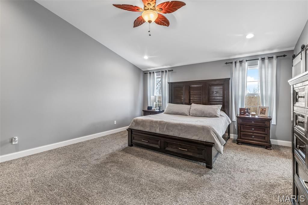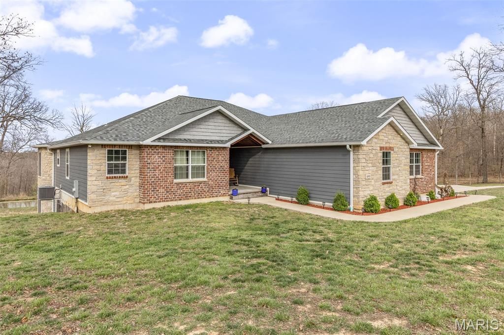 Welcome to this stunning home built in 2020, situated on 4.25 acres in the quiet, highly sought-after Saddle Creek subdivision. Offering nearly 3,000 square feet of thoughtfully designed living space, this property blends quality craftsmanship, modern efficiency, and peaceful surroundings - including a fully stocked 1/4-acre pond. From the moment you arrive, the inviting front entry sets the tone with a covered porch featuring stamped concrete, a vaulted ceiling, and rich wood finishes. Step inside to a spacious living room highlighted by soaring 13-foot vaulted ceilings and a custom ventless gas fireplace, beautifully surrounded by real stone that carries throughout both the interior and exterior. The kitchen is designed to impress with granite countertops, custom cabinetry, stainless steel appliances, wine cooler, and a large walk-in pantry that provides both function and style, while a dedicated office and main floor laundry room add everyday convenience. The primary suite is a true standout, boasting a must-see 11x12 dream closet and a bathroom complete with double vanities, granite countertops, ample storage, a large custom tile shower, and a soothing whirlpool tub. Step outside to unwind on custom decking where you can take in the peaceful views of your acreage and pond. Car enthusiasts, hobbyists, or anyone seeking ample space will be thrilled by this incredible garage setup. The main-level boasts an oversized two-car garage measuring 34x33 feet with 12-foot ceilings, fully insulated and drywalled. Additionally, there's a lower-level 34x40 climate-controlled garage. Both garages offer option to add heated flooring. The lower level also features a 9-foot pour, walk-out basement with a bathroom rough-in and a 9x13 concrete safe room/vault, providing both future expansion potential and peace of mind. Built with efficiency and durability in mind, this energy star home incorporates Low-E argon gas windows, cellulose blown-in insulation, LP siding, and 400 amp electrical service. Every aspect of this home has been meticulously designed to offer a rare combination of space, quality, and functionality.