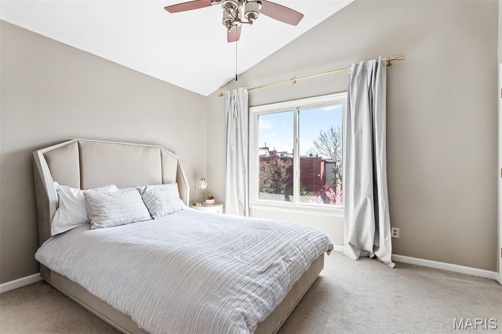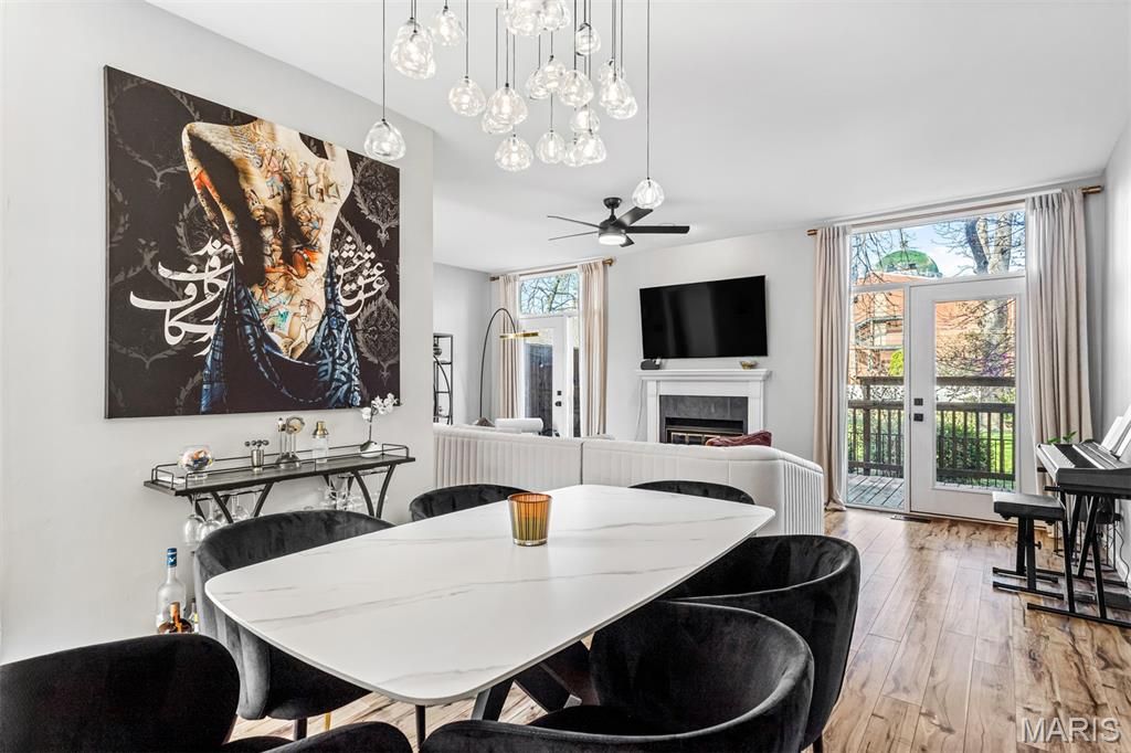 Beautiful townhome located in a premier location in the Central West End. Walking distance to Wash U Medical School, the hospitals, grocery, dining, Forest Park and more! Secure gated complex offers private 2-car garage parking. Additional street parking for guests and a welcoming walkway enhances this stunning home! The 2-story entry foyer is full of natural light with a massive 2 story window! Step into the great room with updated flooring, 2 doors that walk out to the deck, a woodburning fireplace, plus a shimmering chandelier in the dining area. Kitchen has been updated with vinyl plank flooring, all stainless appliances: gas range, built in microwave, dishwasher and refrigerator which is included. White cabinets with beautiful pulls and solid surface counters enhance this spacious kitchen area. The updated main floor half bath and large entry closet complete the main level. Upper level offers 2 ensuite bedrooms with full baths, vaulted ceilings and abundant storage with double closets. The lower level has additional space for a home office, work-out room or second family room. Laundry is located in the lower level. Washer/Dryer are included. A small, tiled entry foyer leads to the 2-car garage with plenty of room for additional storage.