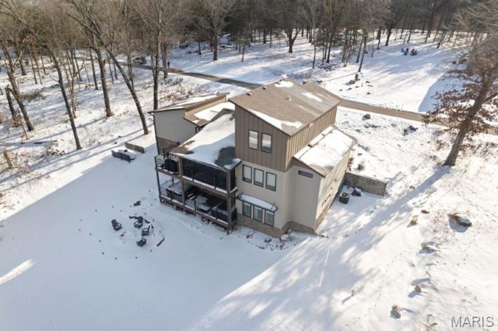 This contemporary lake home features a good winter lakeview, which becomes limited when the trees leaf out. Wood floors, a vaulted living room with a linear fireplace, oversized windows, and both covered and open decks with modern railings to include patio furniture and a hot tub. At the heart of the home, the kitchen becomes a natural gathering place. The expansive island draws everyone in"”whether it's morning coffee before heading to the water or shared meals after a full day at the lake. Thoughtfully designed with custom cabinetry, quartz surfaces, and a walk-in pantry, it balances beauty with everyday functionality, making hosting feel seamless. The main-level primary suite includes high ceilings, a spacious bath with double sinks, LED mirrors, quartz countertops, and a 4x7 walk-in shower, plus generous closet space with built-ins and washer/dryer hookup. The lower level offers a family room with gas fireplace and deck access, a second bedroom suite with soaking tub and walk-in shower, laundry room, and ample storage. There is a wet bar hook up stubbed in. Upstairs is a guest suite with a loft area. Two-car garage with potential for an additional workshop or garage with road access. Boat ramp located one mile down Hwy H. This is more than a lake home"”it's a place where time slows, connections deepen, and memories are made season after season.