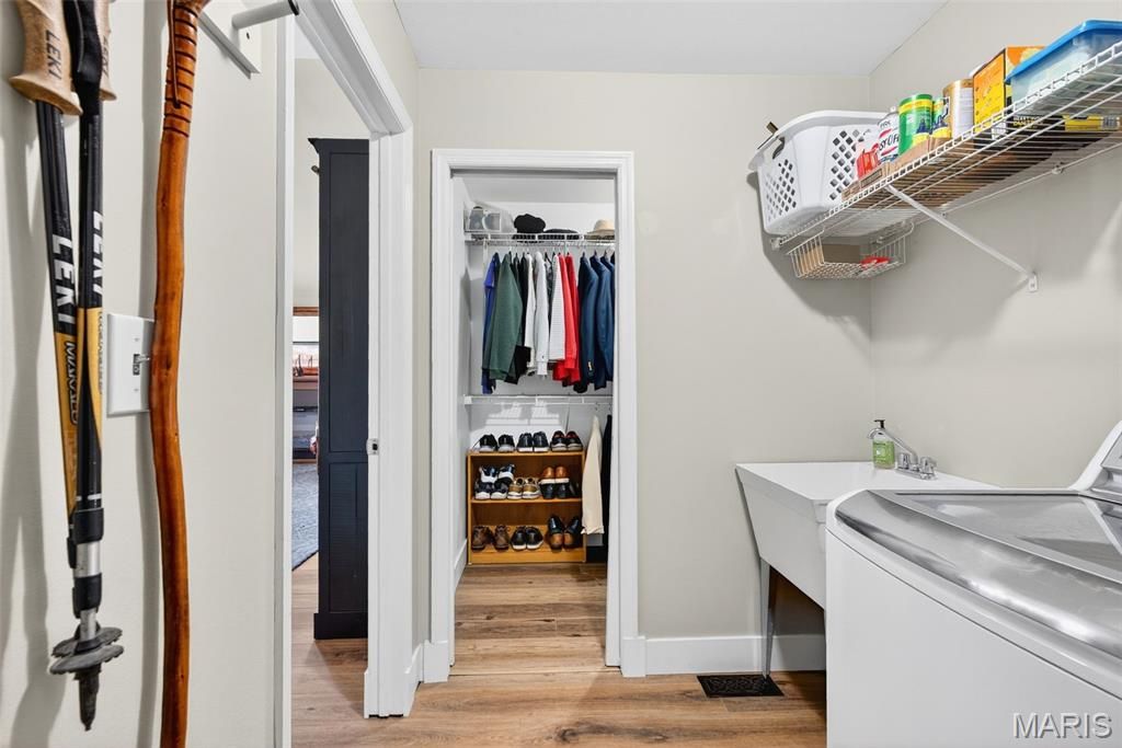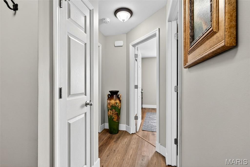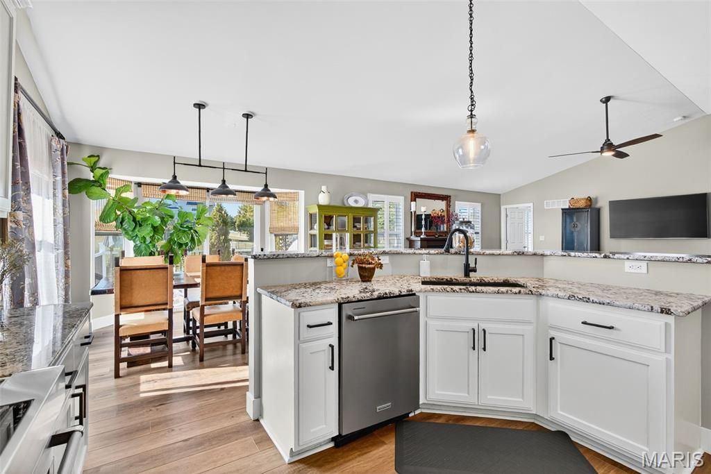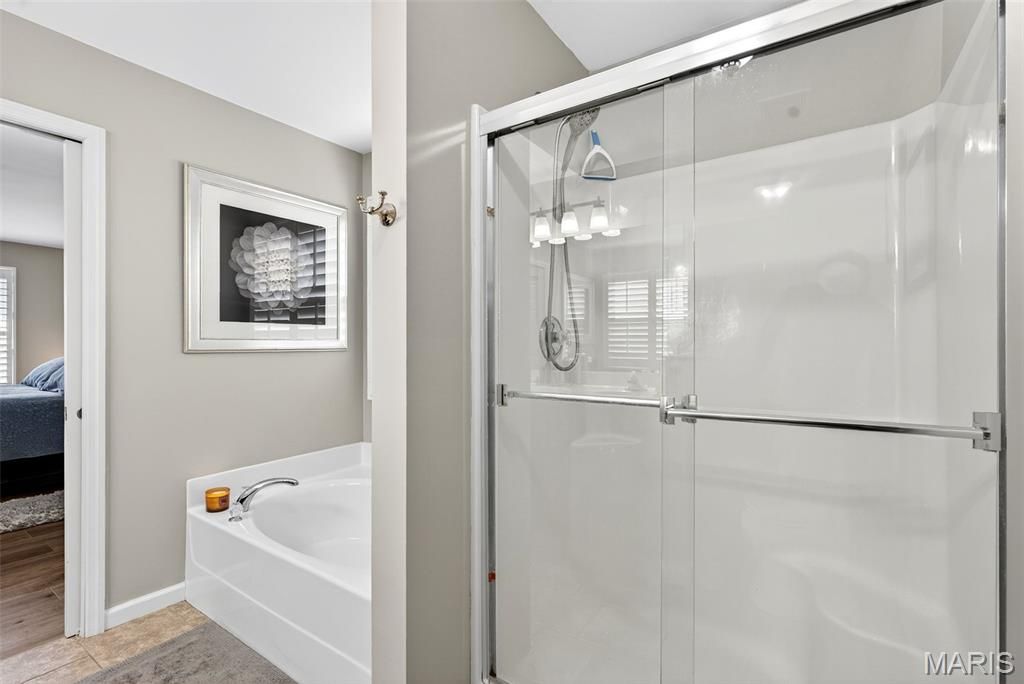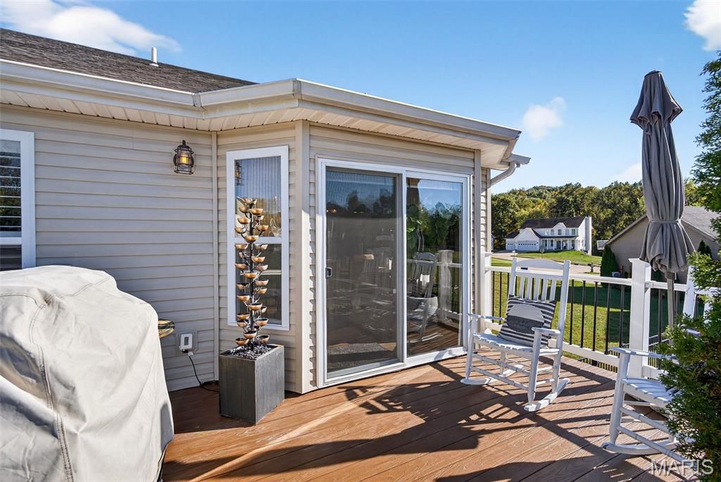 Stunning Vaulted Ranch in Sought After Byrnes Mill Neighborhood! This Open Ranch Features an Impressive Great Room with Soaring Vaulted Ceilings and lots of natural light, Divided bedroom Floor-plan, Newer Luxury Vinyl Plank Floors throughout and Vinyl Shutters, 4 Bedroom, 3 full Bath, Kitchen with White 42" Cabinets, Newer Stainless Steel Appliances, Granite Countertops, Breakfast Bar Island and Pantry, Formal Dining Area with Access to 16' x 12' Composite Deck, Spacious Main Floor Primary Suite with Walkin Closet and hers closet, Double Bowl Vanity, Separate Soaking Tub and Shower. Lower Level Features the Fourth Bedroom with Egress Window and Third Full Bath, Additional Features Include a 3 Car Garage with Oversized Garage Doors to Accommodate Full Sized Vehicles, Main Floor Laundry with Sink, Updated Baths, Upgraded Lighting and Ceiling Fans, New Hot Water Heater 2025, 30' x 20' Paver Patio, Fenced Level Yard, open and ready to add your pool, Fresh Neutral Paint, New Upgraded Front Door, Walkout Basement with Lockable Sliding Door and Windows Yielding Natural Light, 9' Pour in the Basement. Enjoy amazing sunsets from the deck. Call Today! This Home is Truly Turnkey!