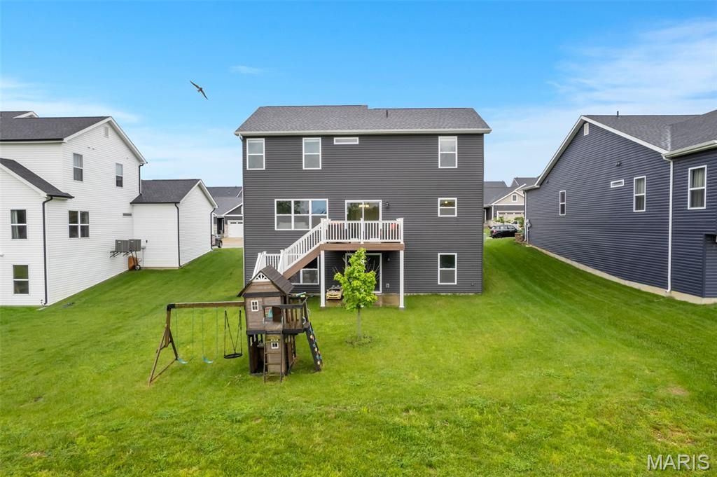 Nestled on a quiet, private street, this beautiful home offers an abundance of natural light and an airy, uplifting atmosphere. The impressive kitchen features a long, functional island, granite counter tops and a gas fireplace . At the entrance, a versatile room can be used as a playroom for kids, a musical space, or a library. The home offers a unique bonus room that can be used as an office, a study, a spa room, or whatever fits your lifestyle. Primary bedroom boasts a walk-in closet and an en-suite bathroom, while the second-floor laundry room adds convenience to your daily routine. The walk-out unfinished basement with large windows presents endless possibilities. With enough space to add two additional bedrooms and a bathroom, it's an ideal set-up for creating living quarters for in-laws, teenagers, or guests. The spacious deck designed with safety and comfort in mind. Take in the breathtaking views of the nearby pond and amazing location, close to Meadows and Kinetic park.