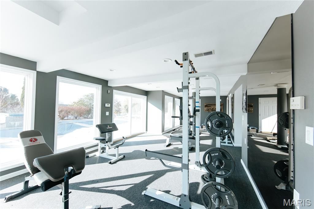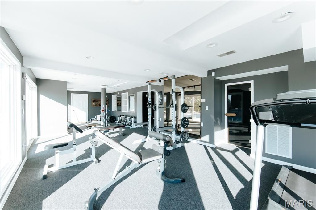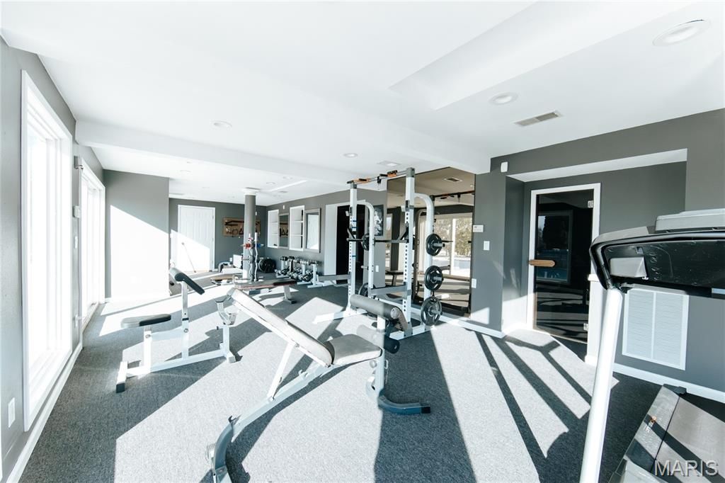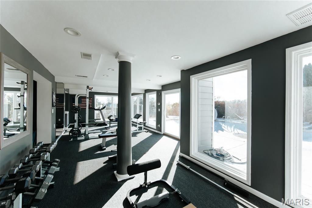 The finished basement is perfect for entertaining, featuring a bar, sauna, a non conforming bedroom, full bathroom, & workout space/pool room, walking out to the backyard oasis, overlooking the stunning countryside!
