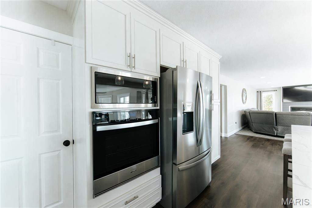 The brand-new kitchen is a chef's dream with soft-close cabinetry, a double wall oven, gas range, quartz countertops, and a center island. It connects seamlessly to the formal dining room, breakfast nook, and living room.