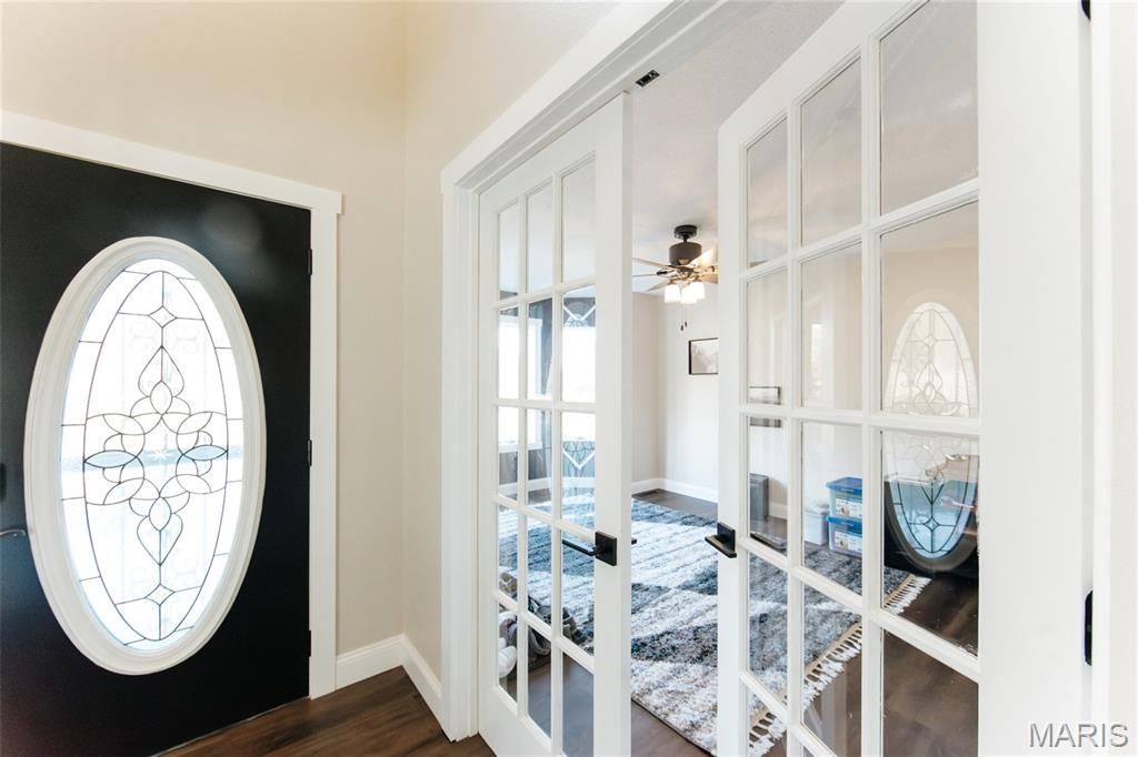 Inside, the two-story foyer leads to an architectural staircase, private office, & den.