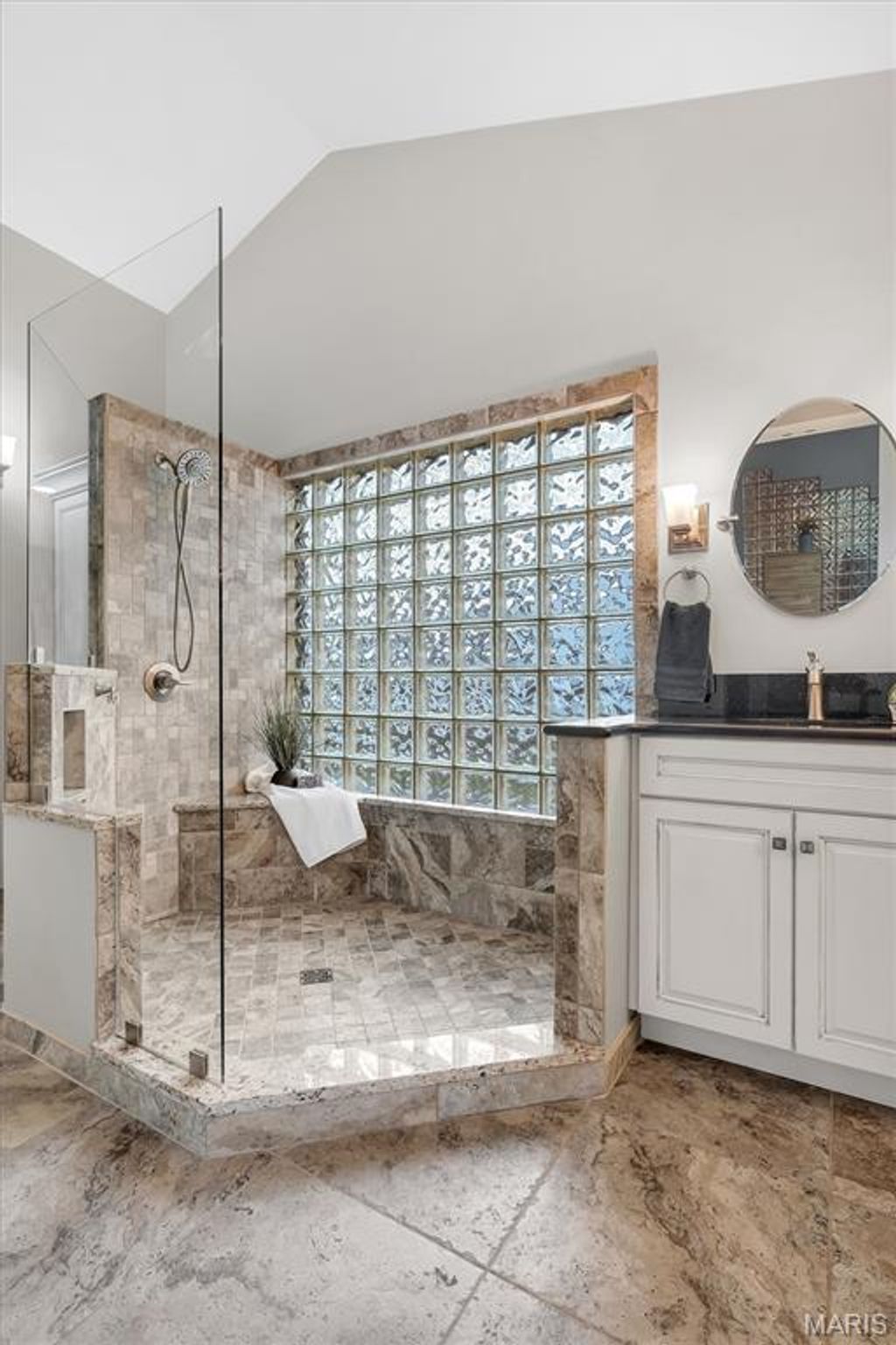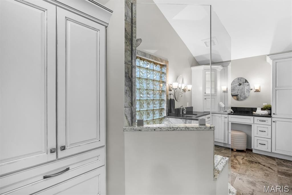 The kitchen has been thoughtfully upgraded with classic shaker-style cabinetry, granite countertops, and premium KitchenAid appliances"”offering a perfect balance of durability, function, and timeless appeal. Distinctive elements such as glass block walls"”including a lighted pass-through element extending towards the garage"”introduces depth, texture, and architectural preservation.