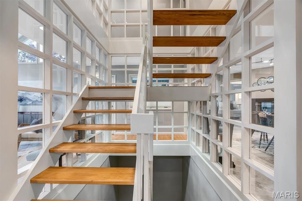 Glass-enclosed stairs lead to a lofted overlook, enhancing the home's sense of light, space, and connection. These architectural elements work in harmony to create a home that feels both expansive and intimate.